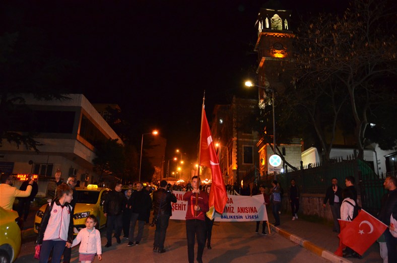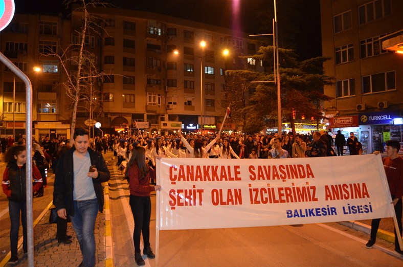 18 Mart Şehitleri Anma Günü ve Çanakkale Deniz Zaferi'nin 103'üncü yıl dönümünde Çanakkale Savaşında öğrencileri şehit olan ve okuldan mezun veremeyen Balıkesir Lisesi'nde keşşaflar, tören ve fener alayı ile şehitlerini rahmet ve minnetle andı. Balıkesir Lisesi bahçesinde 18 Mart Çanakkale Şehitleri programı kapsamında tören düzenlendi. Protokol mensupları başta olmak üzere, izcilerin, öğrencilerin ve velilerin katıldığı, Çanakkale Türkülerinin seslendirildiği etkinlikte keşşaf ateşi yakıldı. Ardından bando eşliğinde fener alayı başladı. Ellerinde; "Son Şafak, Son Dua, Zafer ve Çanakkale', 'Toprak Eğer Uğrunda Ölen Varsa Vatandır', 'Bu Toprakları Vatan Yapan Şehitlerimizi Saygı ve Minnet ile Anıyoruz', 'Bastığın Yerleri Toprak Diyerek Geçme Tanı..', 'Sizi Toprağa Değil, Yüreğimize Gömdük" yazılı dövizleri taşıyan keşşaflar, Kızılay Caddesi, Milli Kuvvetler Caddesi ve Anafartalar Caddesi üzerinden yürüyerek Atatürk Anıtı'na ulaştı.Anıtta şehitler için saygı duruşunda bulunuldu.